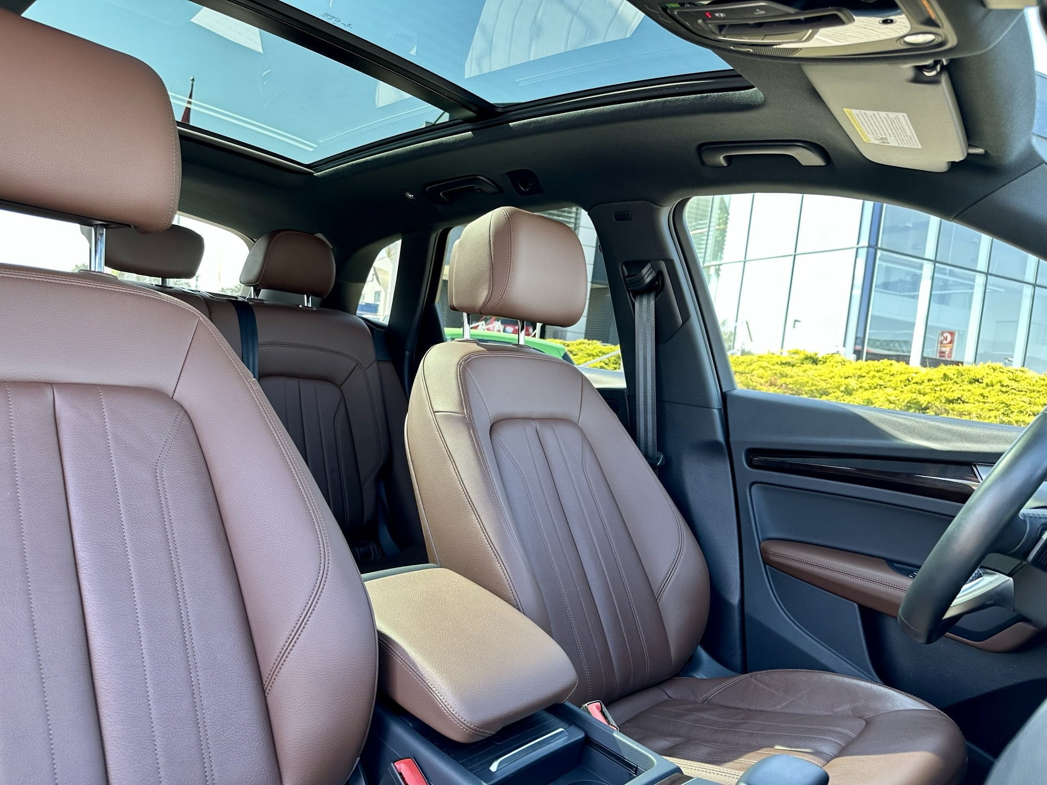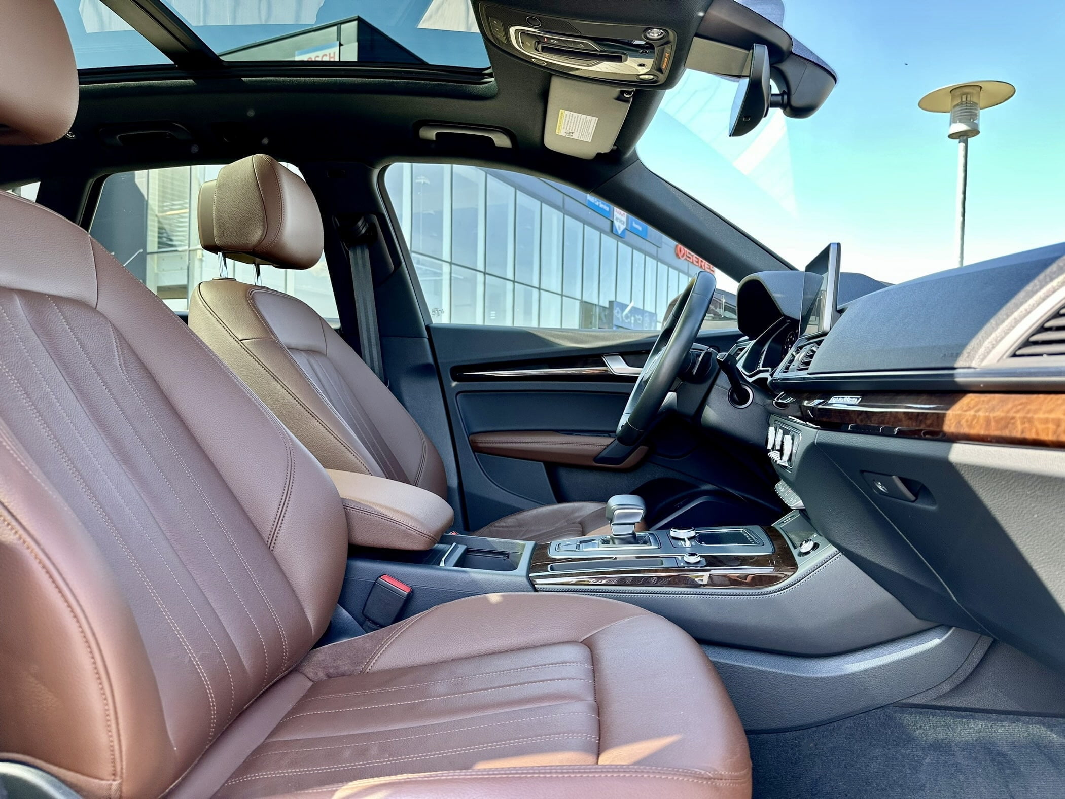 Elevate your adventure with our stunning Audi Q5. Boasting a chic Mythos black metallic exterior, sumptuous Nougat brown leather interior, and a powerful 2-liter turbo petrol engine, this pristine vehicle is your ultimate travel companion. Indulge in unmatched comfort with heated seats, a panoramic roof, and a heated steering wheel. Navigate effortlessly with the virtual cockpit and LED headlights. Trust in top-notch safety features like Audi side assist, parking system with rear camera, and 20-inch wheels.