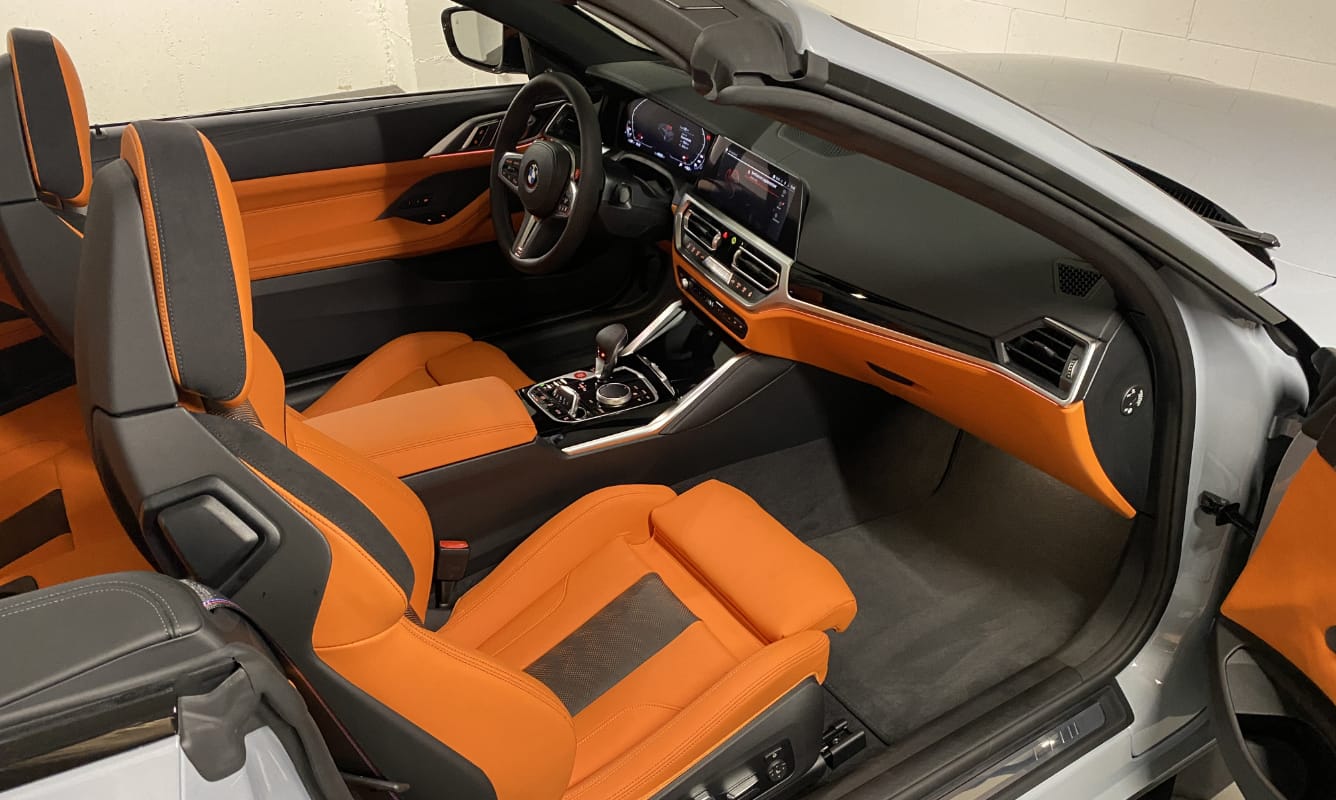 Unleash Open-Air Performance. The BMW M4 Competition Cabriolet delivers exhilarating performance with the freedom of open-top driving. Powered by a 3.0-liter twin-turbo inline-six engine, it produces an impressive 503 horsepower (375 kW), allowing for a rapid 0 to 100 km/h sprint in just 3.7 seconds. With BMW's advanced M xDrive all-wheel-drive system, this convertible offers exceptional grip, handling, and dynamic precision. Inside, it blends luxurious materials with cutting-edge technology, offering a driver-focused cockpit that complements its high-performance DNA. Rent the BMW M4 Competition Cabriolet and experience the thrill of open-air driving with uncompromised power and precision.
