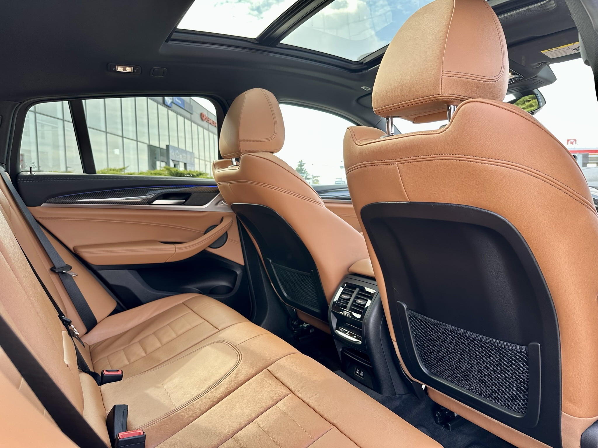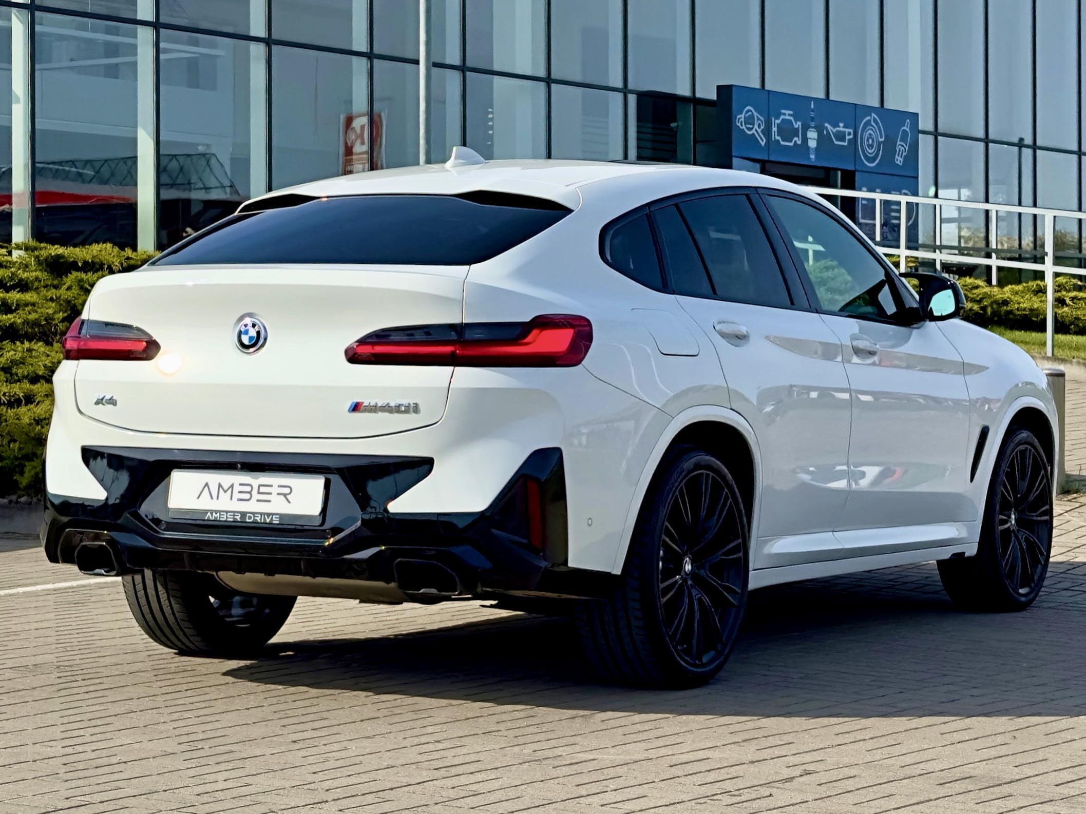 The BMW X4 M40i is the perfect car for those seeking a balance of style and power. With its 3L turbo petrol engine producing 281 kW, M-Sport pack, and black 21-inch wheels, it's sure to turn heads. The Alpine white and cognac Vernasca leather finish, along with advanced tech features like adaptive cruise control and a head-up display, make it a luxurious and practical choice for any driving adventure.