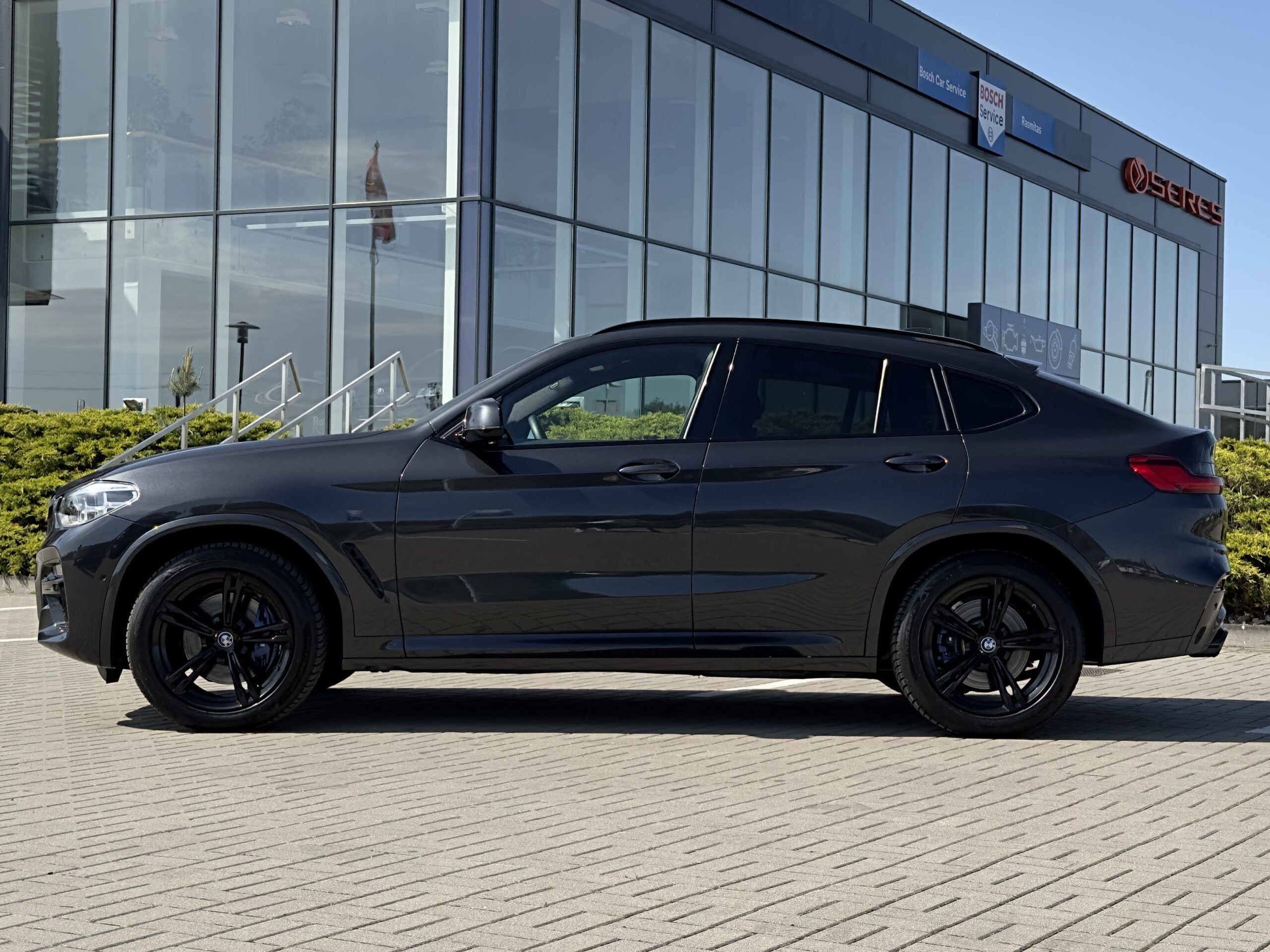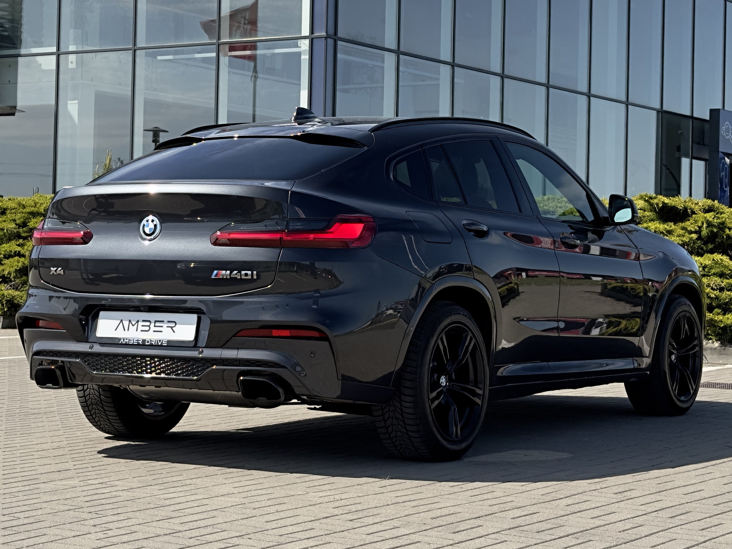 Rev up your next car rental with the thrilling BMW X4 M40i! Its eye-catching Dark Grey metallic paint and black leather interior demand attention. Enjoy luxurious features like adaptive cruise control, a panoramic roof, and 4-zone climate control. The 3-liter turbo petrol engine powers all four wheels with 281 kW, ensuring an electrifying drive. Stand out from the crowd with the M-Sport pack and black 19-inch wheels.