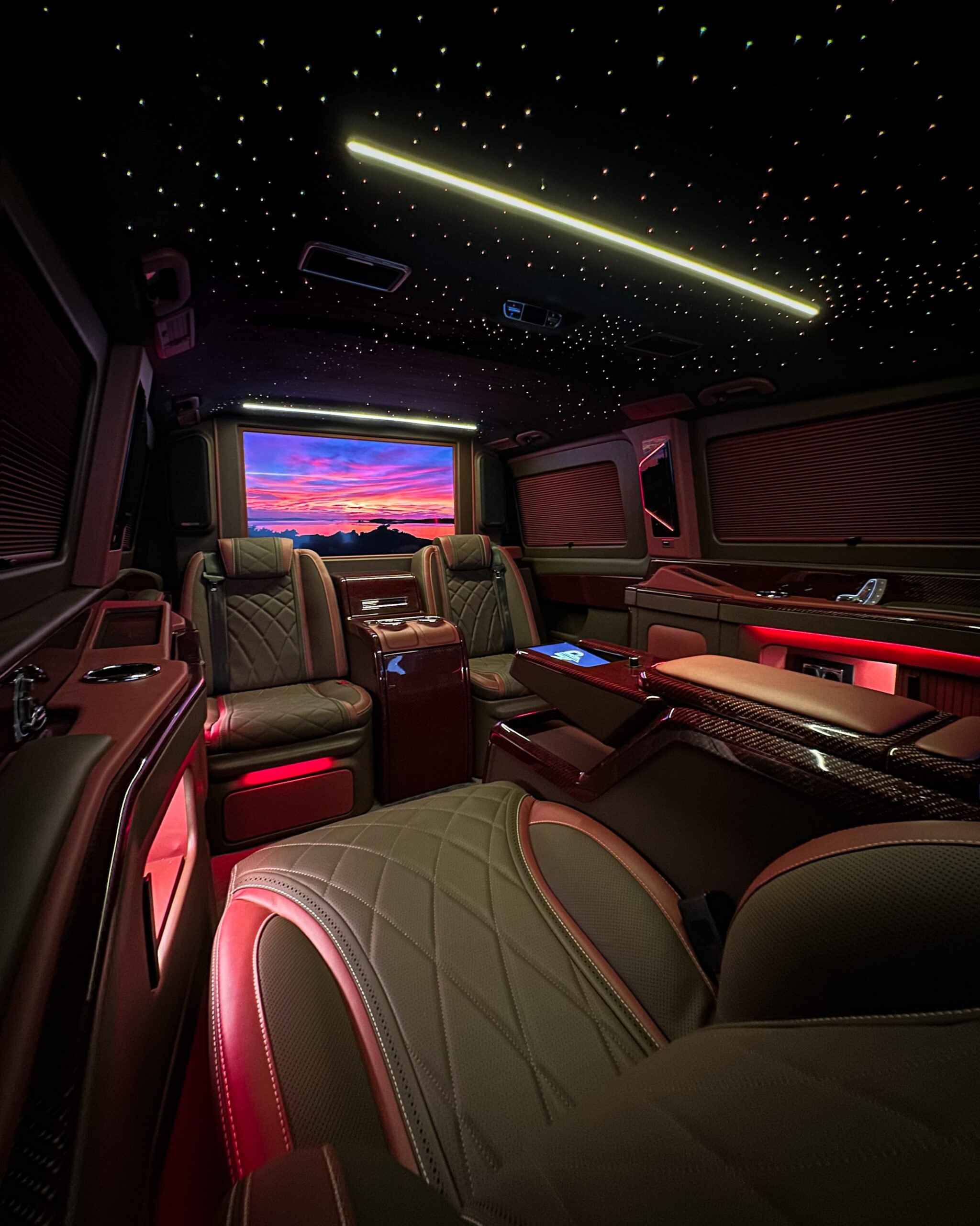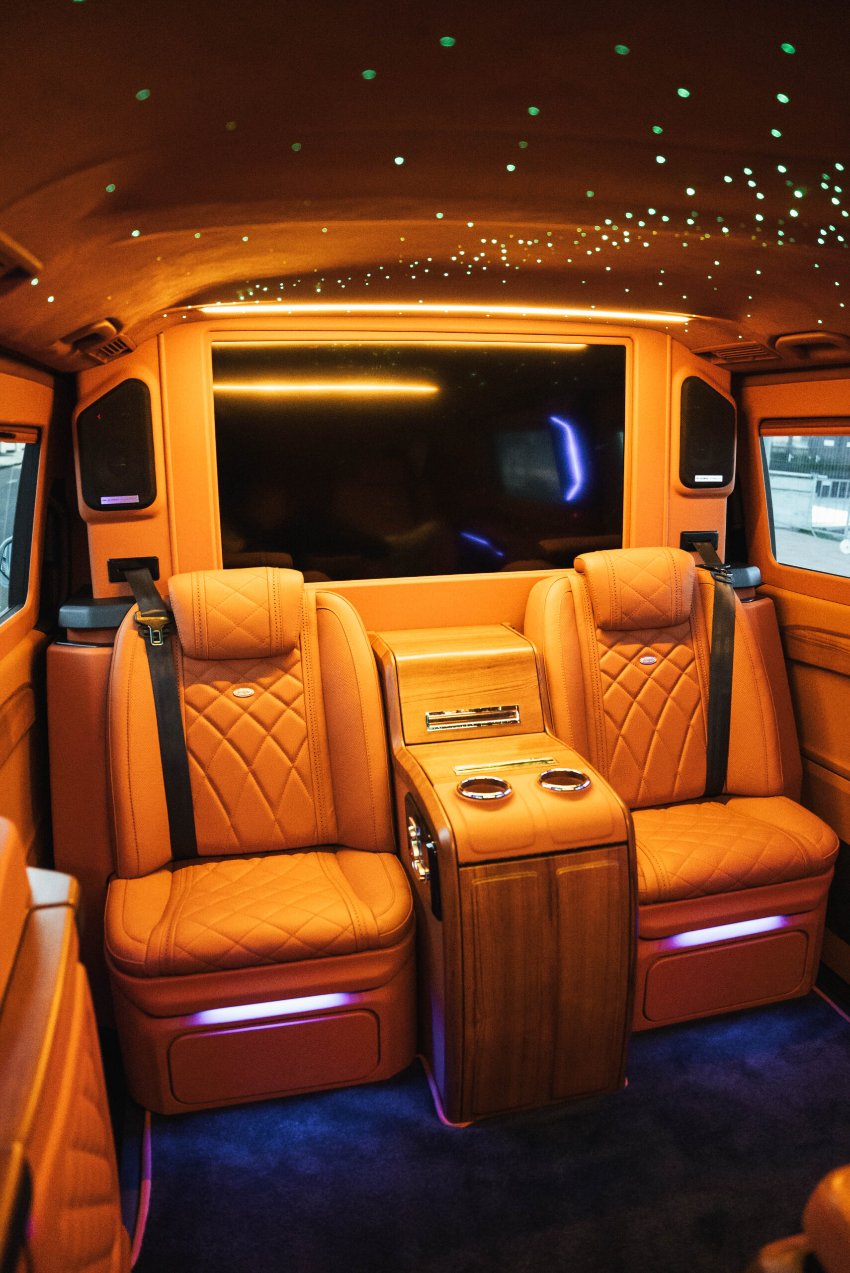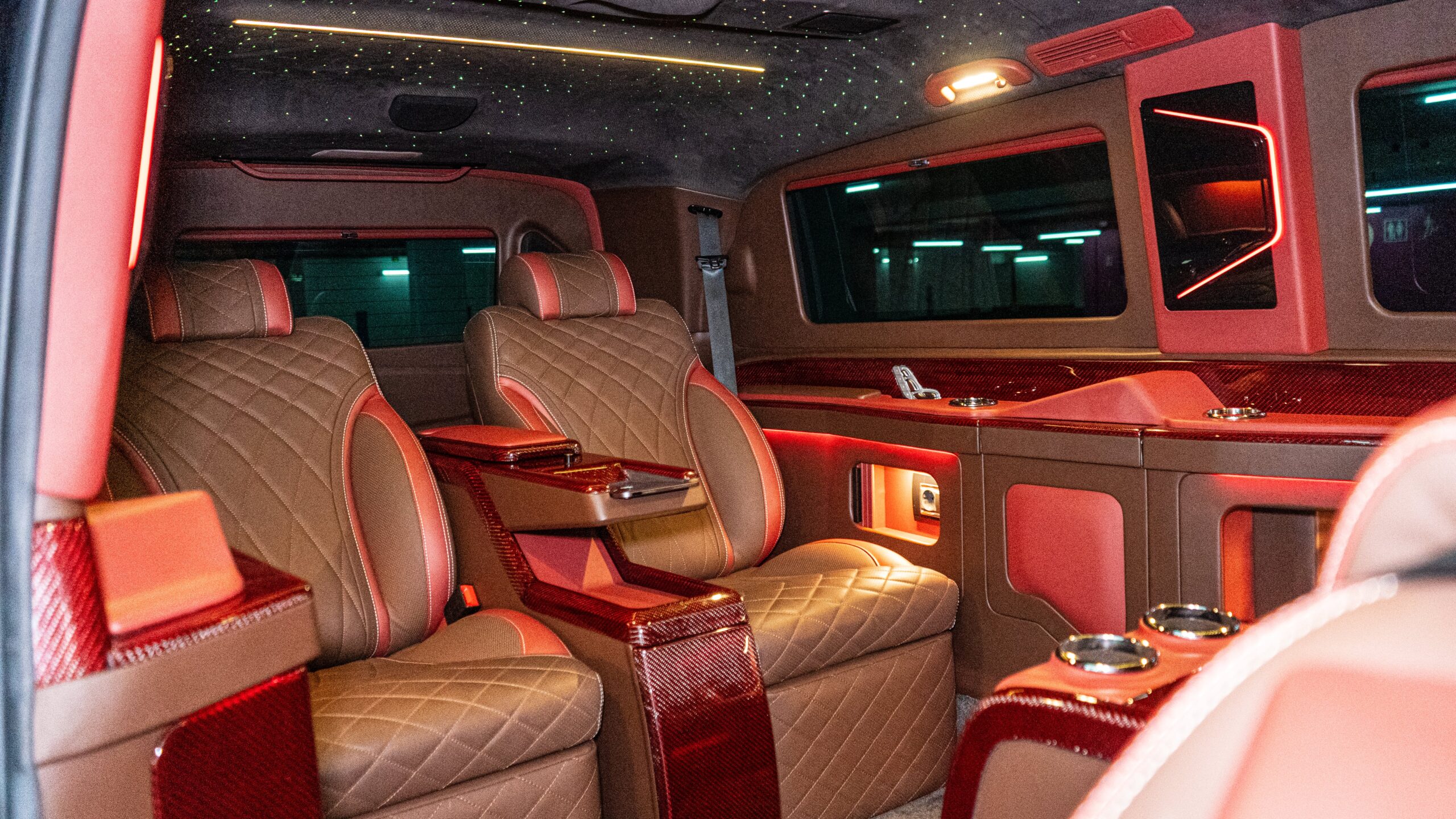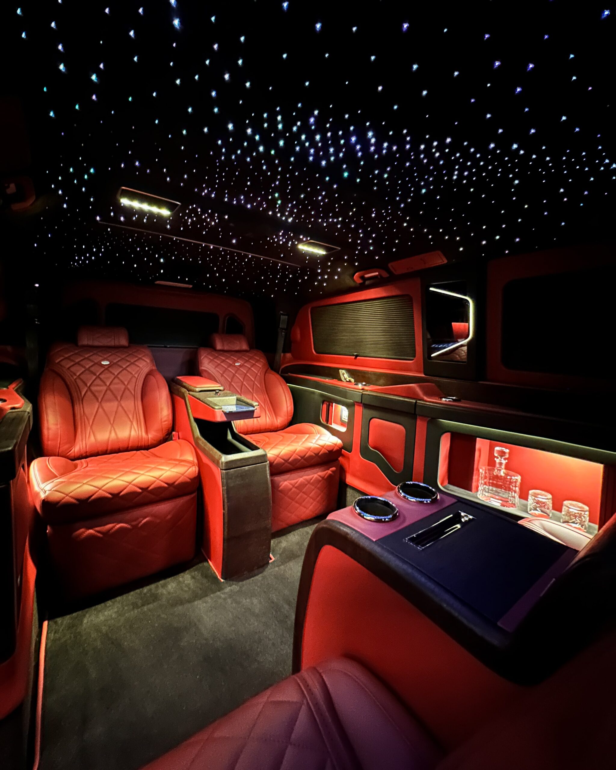 Step into a world of ultimate comfort and prestige with our Mercedes-Benz V-Class VIP fleet, featuring bespoke high-end interiors tailored for discerning travelers. Designed for luxury transfers, executive travel, and VIP experiences, these premium vans offer top-tier comfort, style, and technology in a spacious, elegant setting. Each VIP V-Class is crafted with meticulously designed interiors, boasting plush reclining seats, ambient lighting, and handcrafted finishes. Indulge in state-of-the-art entertainment, including built-in televisions, premium sound systems, and a stunning starry night ceiling, creating a serene atmosphere for every journey. Whether you're traveling for business, leisure, or special occasions, our Mercedes-Benz V-Class VIP fleet offers an unparalleled experience of sophistication and exclusivity.